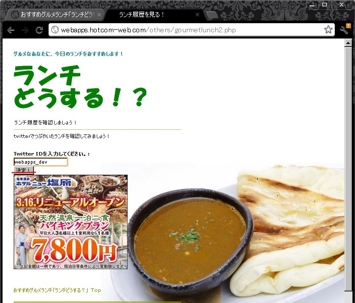 ATwitterIDを入力して、「決定」ボタンを押してください。。